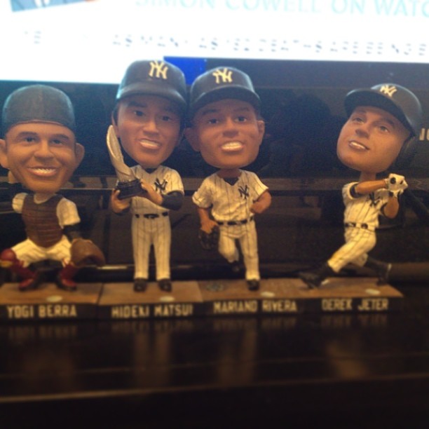 Well, after a horrible game, and a nightmare of an experience, I have my Mariano Rivera bobblehead and he has now joined his friends, Yogi Berra, Derek Jeter and Hideki Matsui in my apartment.